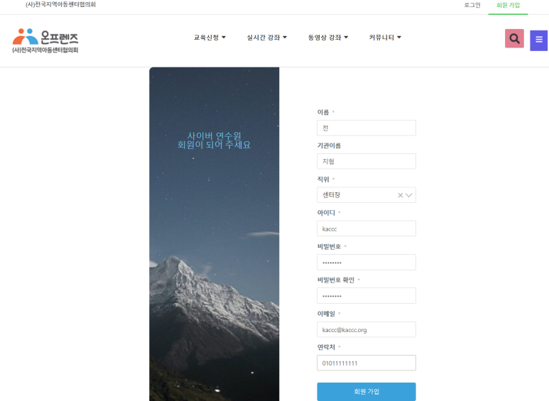 2. 회원가입 신청 정보입력 후 회원가입 버튼을 눌려서 가입하시면 됩니다.